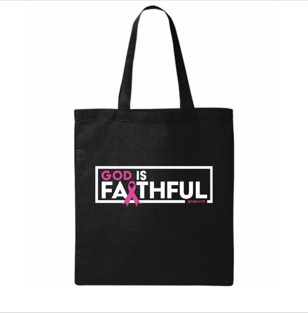 God is Faithful Tote Bag - Breast Cancer Awareness