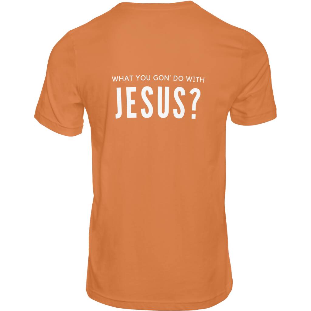 Crew-Neck Short-Sleeve Unisex T-Shirt. Front and back design. Runs true to size.